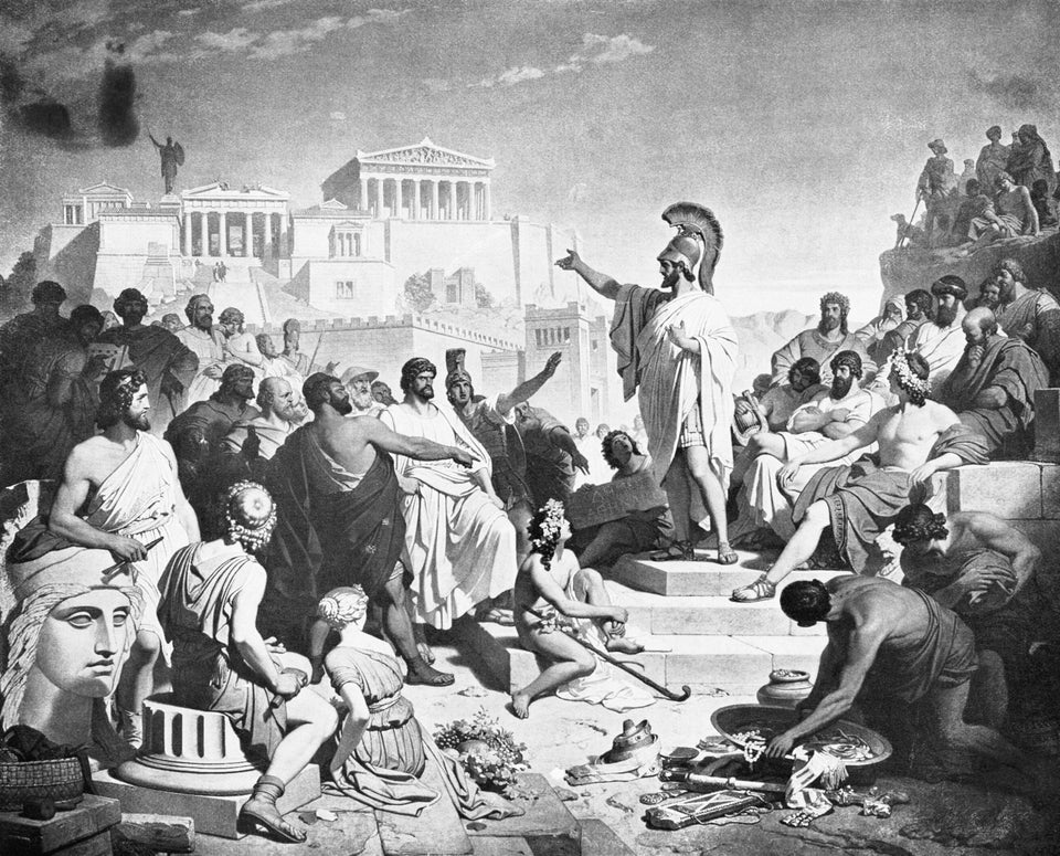 Και καλείται μεν το πολίτευμά μας δημοκρατία, λόγω του ότι η κυβέρνησις του κράτους ευρίσκεται όχι εις χείρας των ολίγων, αλλά των πολλών»
