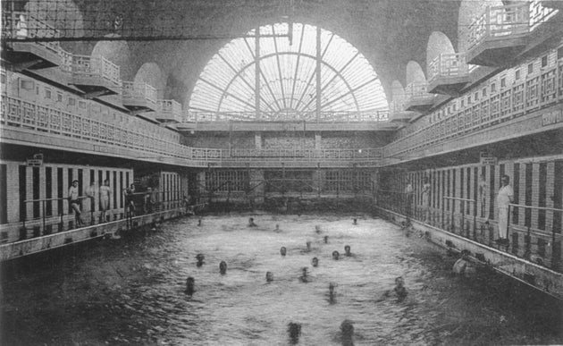 Βεβαίως, η πισίνα αυτή της art deco, με τα περίτεχνα ψηφιδωτά πλακάκια και τις ντουζιέρες από σμάλτο -όλα λουσμένα στο απαλό φως που περνά από τα βιτρώ- είχε εξαρχής κάτι το «μαγικό».