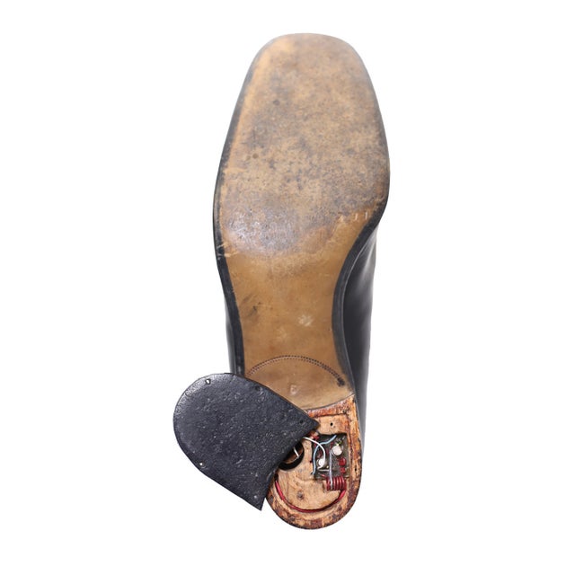 Στο τακούνι του βρισκόταν ένα μικρόφωνο, το οποίο ηχογραφούσε οποιαδήποτε συζήτηση που ήταν απαραίτητο να μαγνητοφωνηθεί σε κάποιο εξωτερικό περιβάλλον.