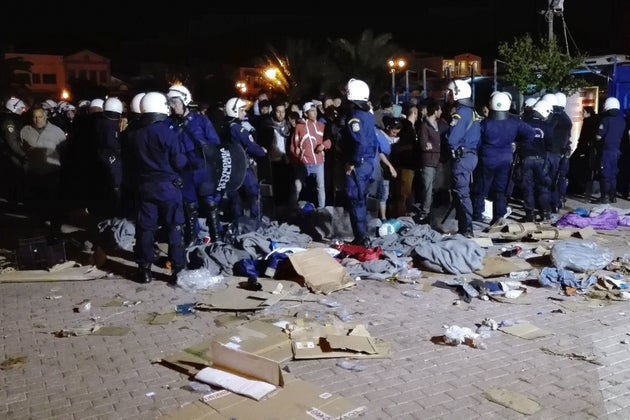 Εκεί είχαν συγκεντρωθεί 300 περίπου άτομα, για την καθιερωμένη υποστολή σημαίας από στρατιωτικό άγημα. Μετά το τέλος της διαδικασίας, 150 περίπου από τα άτομα αυτά, κάποια εκ των οποίων με καλυμμένα τα χαρακτηριστικά των προσώπων τους, προσέγγισαν με απειλητικές διαθέσεις μετανάστες, οι οποίοι έκαναν καθιστική διαμαρτυρία στην πλατεία Σαπφούς. Στόχος των ατόμων αυτών ήταν να «καθαρίσει» η πλατεία από τους μετανάστες.