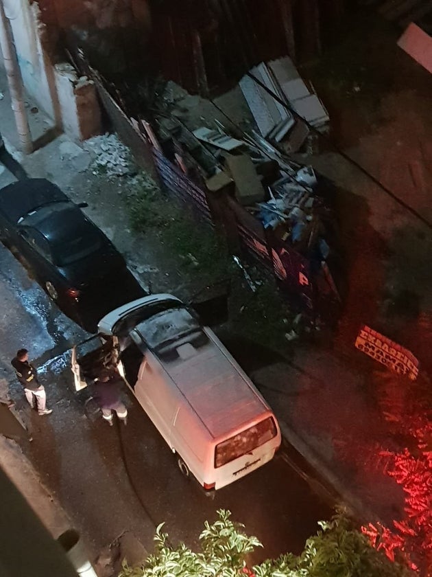 Φωτογραφίες από το φλεγόμενο λευκό βαν που κάηκε στην οδό Μήλου στον Πειραιά από τους δράστες της επίθεσης με στόχο 36χρονο που έχει κατηγορηθεί για υποθέσεις της νύχτας, δημοσιεύει η HuffPost Greece.