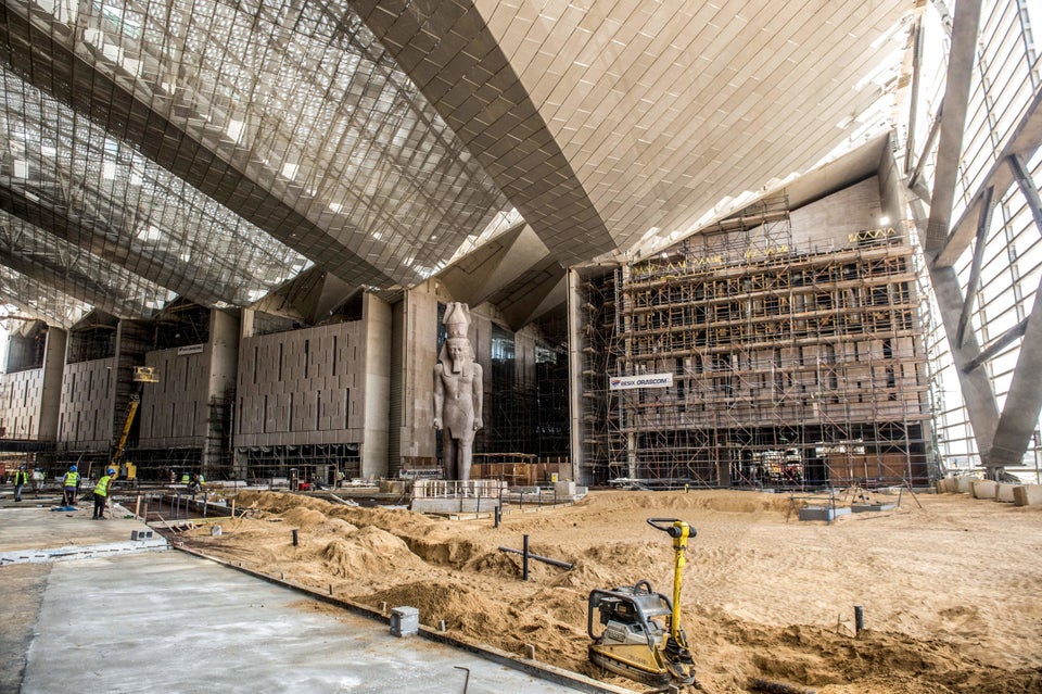 Για να είναι έτοιμο το μουσείο στην ώρα του για τα εγκαίνια, περίπου 5.000 εργάτες δουλεύουν πυρετωδώς στον αχανή χώρο του εργοταξίου, ενώ στα συνολικά επτά εργαστήρια του κέντρου συντήρησης, 100 ειδικοί συντηρητές -όλοι Αιγύπτιοι, όπως με καμάρι τονίζει ο δρ. Ταουφίκ- 100 Αιγυπτιολόγοι και επιμελητές, μαζί με τα 100 μέλη του διοικητικού προσωπικού και τους 100 φύλακες δίνουν τη δική τους «μάχη» ενάντια στον χρόνο.