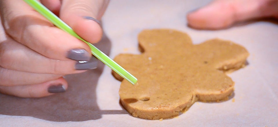 - Αν κλείσει λίγο η τρύπα στα μπισκοτένια σας χριστουγεννιάτικα στολίδια εφόσον ψηθούν, μπορείτε να την ανοίξετε ξανά πιέζοντας περιμετρικά με μια οδοντογλυφίδα όσο είναι ακόμη ζεστά. (Αμέσως δηλαδή με το που θα τα βγάλετε από τον φούρνο.) Εφαρμόστε τη διαδικασία χωρίς να μετακινήσετε τα μπισκότα από το ταψί.