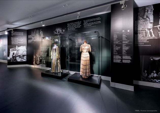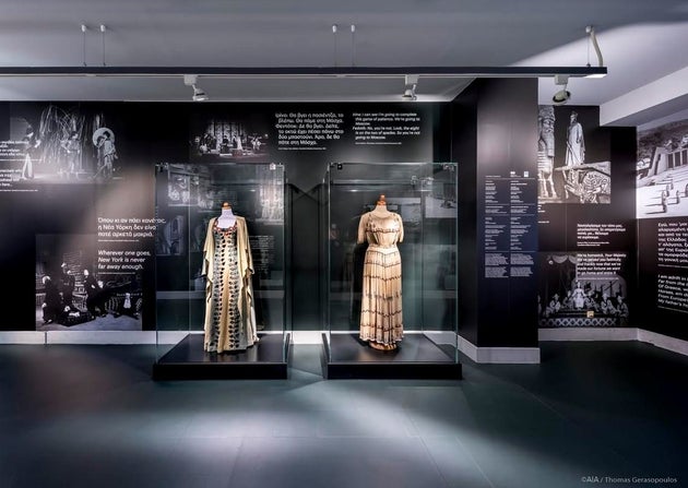 Επίσης στην έκθεση του αεροδρομίου φιλοξενούνται δύο απαράμιλλης αξίας και σημασίας κοστούμια. Του Αντώνη Φωκά, από την παράσταση Ιφιγένεια εν Αυλίδι το 1957, κοστούμι χορού, χιτώνας εκρού – υφαντό αργαλειού με έξοχες πτυχώσεις. Και του Γιώργου Βακαλό, από την παράσταση ’Eμπορος της Βενετίας το 1945, ένα μακρύ λινομέταξο φόρεμα, υποκίτρινο και φιστικί απλικαρισμένο με υφασμάτινα λουλούδια και κλωνάρια.