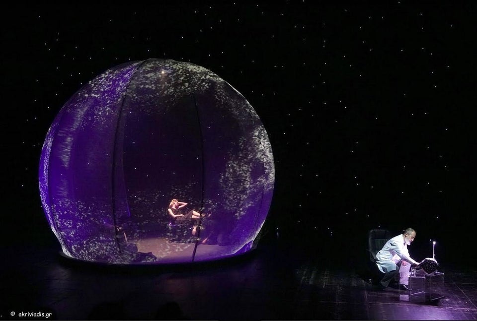 Μετά τις sold out παραστάσεις του προηγούμενου Νοεμβρίου και Δεκεμβρίου, όσοι δεν πρόλαβαν να δουν το έργο της Ζέτης Φίτσιου σε σκηνοθεσία Ανδρέα Φλουράκη έχουν τώρα την ευκαιρία να παρακολουθήσουν στο Μέγαρο ένα ιδιαίτερο σκηνικό θέαμα που διαδραματίζεται μέσα σε μια διάφανη σφαίρα και να απολαύσουν ένα θεατρικό-εικαστικό περιβάλλον υψηλής αισθητικής, όπου το εντυπωσιακό video art σκηνικό και οι φωτισμοί σχεδιάστηκαν με ειδικό τρόπο για να υπηρετήσουν τη συνθήκη της παρατήρησης.