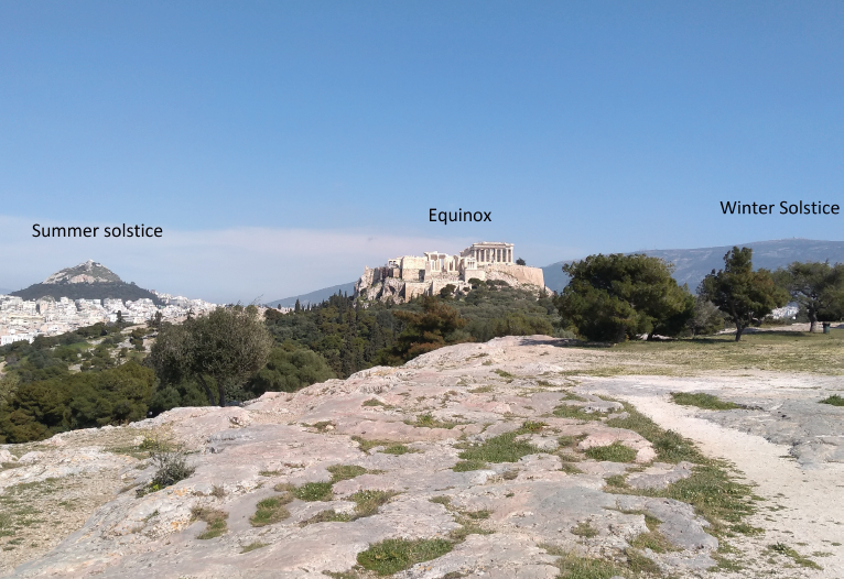 Όπως γράφει στον οδηγό του ο Βασίλης, ο Μέτωνας, από τη θέση που είχε επιλέξει στην Πνύκα, η ανατολή του ηλίου στο θερινό ηλιοστάσιο φαίνεται από την κορυφή του λόφου του Λυκαβηττού, ενώ έξι μήνες αργότερα, στο χειμερινό ηλιοστάσιο, ο ήλιος ανατέλλει από την κορυφή του Υμηττού. Τέλος, στις ισημερίες, η ανατολή ευθυγραμμίζεται με το βράχο της Ακρόπολης.