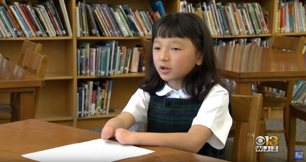 Η 10χρονη μαθήτρια, που έχει γεννηθεί έτσι, απέσπασε το πρώτο βραβείο στον εθνικό διαγωνισμό χειρογράφου.