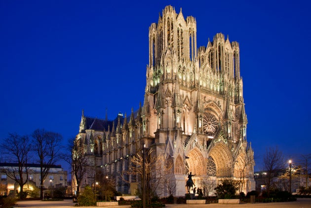 Σ΄ αυτόν τον Γοτθικότερο Καθεδρικό Ναό θα γίνει η στέψηόλων των Γάλλων Βασιλέων. Και είναι αυτός που βομβαρδίστηκε από τους Γερμανούς στον Α΄Παγκόσμιο Πόλεμο, αμέσως μετά την Ανακωχή. Είχε καεί, λιγότερο από την Παναγία των Παρισίων, αλλά είχε υποστεί τεράστιες καταστροφές. Από τα 2.303 αγάλματα που τον περιβάλουν έπεφταν τεμάχια πέτρας στα κεφάλια των πιστών μπαίνοντας ή βγαίνοντας από τον ναό.