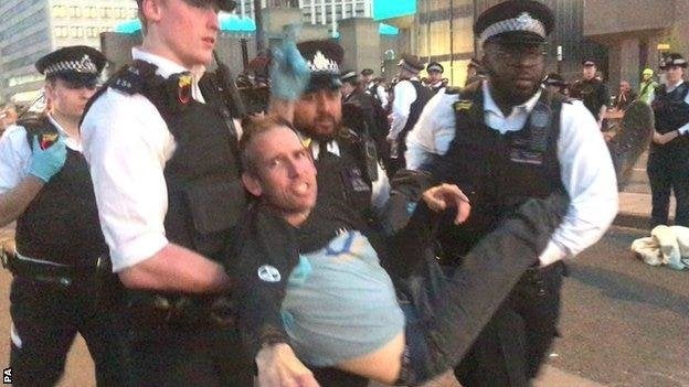 Την Κυριακή συνελήφθησαν από την αστυνομία 963 διαδηλωτές στο Oxford Circus, τη γέφυρα Waterloo και στο Westminster.