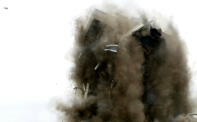 Οι εκρηκτικές ύλες τοποθετήθηκαν στα χαλύβδινά στηρίγματα του Πύργου, με αποτέλεσμα το κτίτιο των 47 ετών να γκρεμιστεί σαν τραπουλόχαρτο. Η έκρηξη, η οποία διήρκησε μόλις 16 δευτερόλεπτα, δημιούργησε ένα παχύρρευστο σύννεφο σκόνης που παρέμεινε στον αέρα για αρκετά λεπτά.