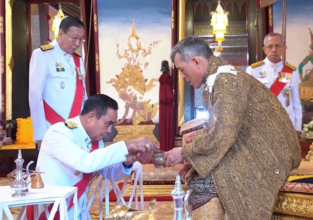 Η τελετή, που μεταδίδεται απευθείας από τα τηλεοπτικά δίκτυα της Ταϊλάνδης, είναι ένα μίγμα βουδιστικών και βραχμανικών εθίμων και ξεκίνησε στις 10:09 (τοπική ώρα), μια ώρα που επιλέχθηκε βάσει των άστρων.