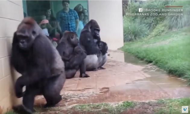 Οι γορίλλες στο ζωολογικό κήπο του Ρίβερμπανκς, στη Νότια Καρολίνα των ΗΠΑ, δεν θέλουν με τίποτα να βρεθούν εκτεθειμένοι στη βροχή.