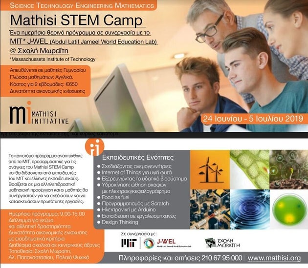 Η Μάθηση Πρωτοβουλία, ένας ελληνικός μη κερδοσκοπικός εκπαιδευτικός οργανισμός, σε συνεργασία με τη Σχολή Μωραΐτη και το MIT (Massachusetts Institute of Technology) Abdul Latif Jameel World Education Lab (J-WEL), φέρνει για πρώτη φορά στην Ελλάδα ένα θερινό πρόγραμμα STEM διάρκειας 2 εβδομάδων για παιδιά του Γυμνασίου.