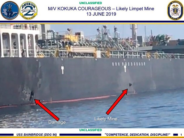Σύμφωνα με τους Αμερικανούς, στο βίντεο καταγράφονται στελέχη των Φρουρών της Επανάστασης, επίλεκτου σώματος των ένοπλων δυνάμεων του Ιράν, καθώς προσεγγίζουν το ένα από τα δύο πετρελαιοφόρα πλοία που δέχθηκαν επίθεση - το M/V Kokuka Courageous - και κατόπιν αφαιρούν μια μαγνητική νάρκη που δεν είχε εκραγεί από το πλευρό του κύτους του τάνκερ.