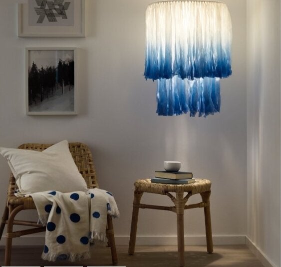 Τα φωτιστικά είναι κάτι στο οποίο οι περισσότεροι δεν δίνουν τη σημασία που τους αξίζει. Όχι εγώ. Το καπέλο φωτιστικού που ανακάλυψα είναι κάτι που πραγματικά με ενθουσίασε, ίσως επειδή μου θυμίζει κάτι πολύ αγαπημένο μου, τη θάλασσα. Τα αιγαιοπελαγίτικα χρώματα με μετέφεραν νοητά σε κυκλαδίτικα σκηνικά. Οι λευκοί και μπλε τόνοι που κυριαρχούν δίνουν μια αίσθηση χαλάρωσης και ζεστασιάς. Μπορείς να το τοποθετήσεις σε ένα ωραίο spot στο σαλόνι, το οποίο μπορεί να γίνει το σημείο χαλάρωσής σου. Θα είναι σαν να έχεις πάει διακοπές.
