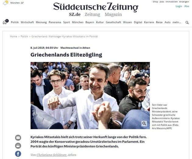 «Οι έλληνες συντηρητικοί αναλαμβάνουν μετά τη νίκη, υποσχόμενοι περισσότερες επενδύσεις και λιγότερους φόρους» ο τίτλος του ρεπορτάζ του Reutersπου κάνει μια σύντομη αναδρομή στο πως ο Τσίπρας ανέλαβε την εξουσία το 2015 «τη στιγμή που η οικονομική κρίση ήταν στην κορύφωσή της...αν και αρχικά υποστήριξε πως θα αντισταθεί σε πιο σκληρά μέτρα λιτότητας αναγκάστηκε να υπογράψει άλλο ένα μνημόνιο...μια απόφαση που δυσαρέστησε τους ψηφοφόρους». Σε ότι αφορά τον 51χρονο Κυριάκο Μητσοτάκη, τονίζει πως αν και ο ίδιος είναι φιλελεύθερος «στο κόμμα του βρίσκουν καταφύγιο και μέλη με πιο δεξιές απόψεις». Ειδική αναφορά γίνεται και στην μη είσοδο της Χρυσής Αυγής στη Βουλή. Τέλος φιλοξενεί και δηλώσεις του πολιτικού αναλυτή Θεόδωρου Κουλουμπή ο οποίος υποστηρίζει πως «ο βασικός λόγος [για αυτό το εκλογικό αποτέλσμα] είναι η οικονομία. Τα τελευταία 4,5χρόνια οι άνθρωποι δεν είδαν καμία βελτίωση, αντιθέτως υπήρξαν μειώσεις μισθών και συντάξεων». Το ενδιαφέρον τώρα όπως τονίζεται στο ρεπορτάζ, στρέφεται στις επιλογές που θα κάνει ο κ.Μητσοτάκης σε τομείς όπως η ενέργεια, η ανάπτυξη, η εξωτερική πολιτική και σχολιάζεται πως «ήταν πολύ φειδωλός κατά την προεκλογική καμπάνια για τις επιλογές που θα κάνει». Και καταλήγει: «Η πραγματική δοκιμασία θα είναι ο επόμενος προϋπολογισμός με τον Κ.Μητσοτάκης να παρουσιάζει τα βασικά σημεία της οικονομικής τους πολιτικής στην Έκθεση της Θεσσαλονίκης στον Σεπτέμβριο».