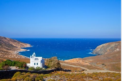 Εδώ, στο χωριό Σγαλάδος της Τήνου, ενώ σουρουπώνει, ο Δημήτρης Πλυτάς υποστέλλει τη σημαία στο εκκλησάκι Ρόδον το Αμάραντον λίγο μετά τη Παράκληση.