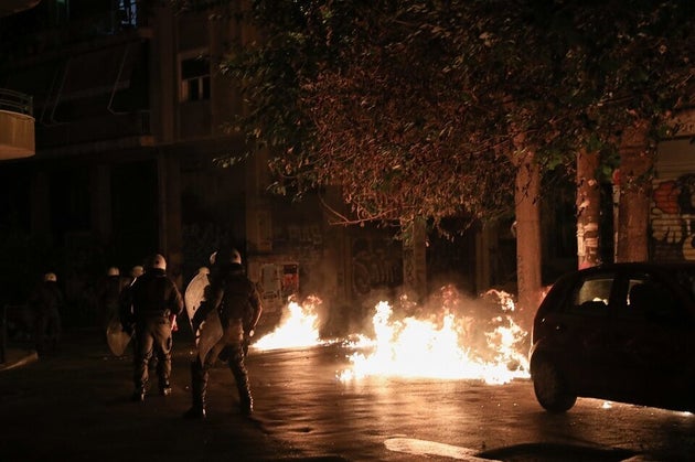 Τα επεισόδια ξεκίνησα γύρω στις 23:30 το βράδυ, με την καταδρομική επίθεση εναντίον τον αστυνομικών. Η διμοιρία των ΜΑΤ απάντησε με χειροβομβίδες κρότου - λάμψης και χημικά, με τα επεισόδια να επεκτείνονται στα γύρω στενά. Οι αστυνομικοί έφτασαν μέχρι την πλατεία Εξαρχείων, έκαναν χρήση χημικών και σύμφωνα με πληροφορίες ένα δακρυγόνο έπεσε μέσα στην κατάληψη Κ-ΒΟΞ, με αποτέλεσμα νέα επεισόδια έξω και στον προθάλαμο του κτιρίου, στην οδό Θεμιστοκλέως.