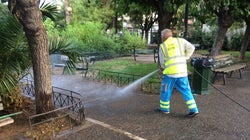 Γενικός καθαρισμός στην οδό Αντωνιάδου, δίπλα στην ΑΣΟΕΕ, από τον Δήμο Αθηναίων