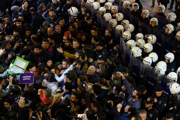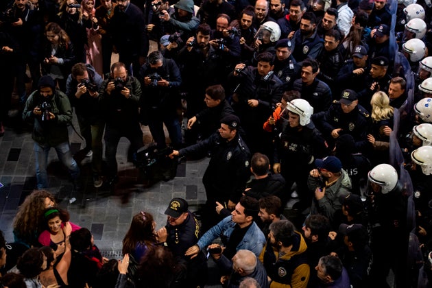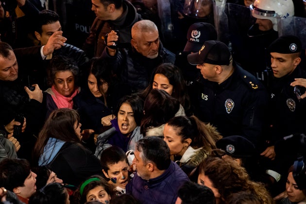 Σύμφωνα με έναν φωτορεπόρτερ του Γαλλικού Πρακτορείου, περίπου 2.000 άνθρωποι είχαν συγκεντρωθεί νωρίτερα σε μια μικρή πλατεία, σε μικρή απόσταση, για να τιμήσουν την Παγκόσμια Ημέρα κατά της βίας σε βάρος των γυναικών. Πολλοί κρατούσαν πλακάτ με τα οποία ζητούσαν «το τέλος της ατιμωρησίας» ενώ σε άλλα είχαν γράψει τα ονόματα γυναικών που δολοφονήθηκαν από συζύγους ή πρώην συντρόφους στην Τουρκία.