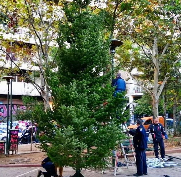 Χριστουγεννιάτικο δέντρο στην Πλατεία στα Εξάρχεια από τον Δήμο Αθναίων