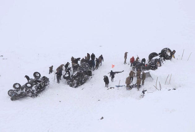 Οι διασώστες είχαν αναπτυχθεί στο σημείο αναζητώντας επιζώντες έπειτα από την χιονοστιβάδα της Τρίτης που έθαψε ένα μίνιμπας. Πέντε άνθρωποι σκοτώθηκαν και οκτώ τραυματίστηκαν από την πρώτη χιονοστιβάδα.
