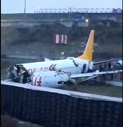 A Pegasus airlines aircraft has crashed off the end of the runway at Istanbul airport #Turkey#Istanbulpic.twitter.com/o98TuYQ5R9