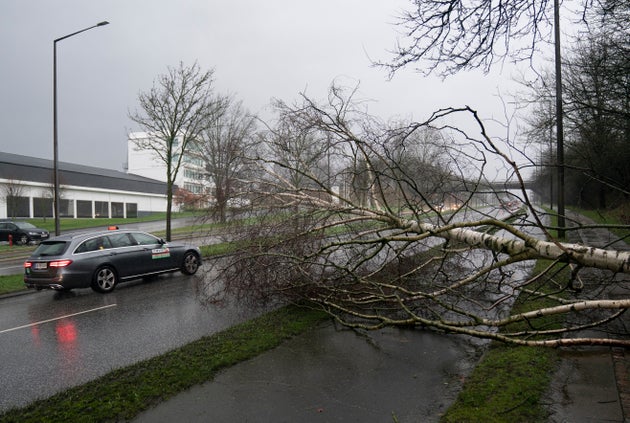 Ενα τρένο που πραγματοποιούσε το δρομολόγιο Αμστερνταμ-Βερολίνο με 300 ως 350 επιβάτες χτύπησε ένα δέντρο που είχε πέσει στις ράγες αλλά κατόρθωσε να φτάσει στον πλησιέστερο σιδηροδρομικό σταθμό έπειτα από δύο ώρες.