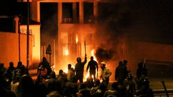 Νωρίτερα, μία όμάδα αστυνομικών με πολιτικά επιχειρεί αιφνιδιασμό. Ξαφνικά πηδάνε πάνω από την περίφραξη του λιμανιού και περνούν στην αντεπίθεση. Τα δακρυγόνα είναι στην ημερήσια διάταξη, ενώ μάλλον δεν βρέθηκε κάποιος να ευχηθεί ”καλό ταξίδι”...