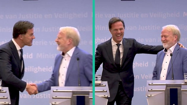 Λίγα λεπτά αργότερα ο Ολλανδός πρωθυπουργός έκανε χειραψία με τον Γιάαπ φαν Ντίζελ, επικεφαλής του Ολλανδικού Κέντρου Ελέγχου Μολυσματικών Ασθενειών.