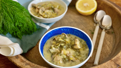 Μετά μια ώρα προσθέτουμε τις αγκινάρες, την μαραθόριζα κομμένη σε φέτες, αλάτι, πιπέρι, τον άνηθο και μαγειρεύουμε για άλλη μισή ώρα.