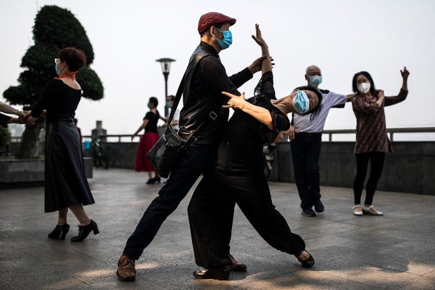 Οι κάτοικοι φορούν μάσκες κατά τη διάρκεια μαθημάτων χορού την Παρασκευή κοντά στον ποταμό Yangtze στο Γουχάν της Κίνας. Τα μέτρα έχουν κατά κύριο λόγο αρθεί μετά από 11 εβδομάδες καραντίνας.