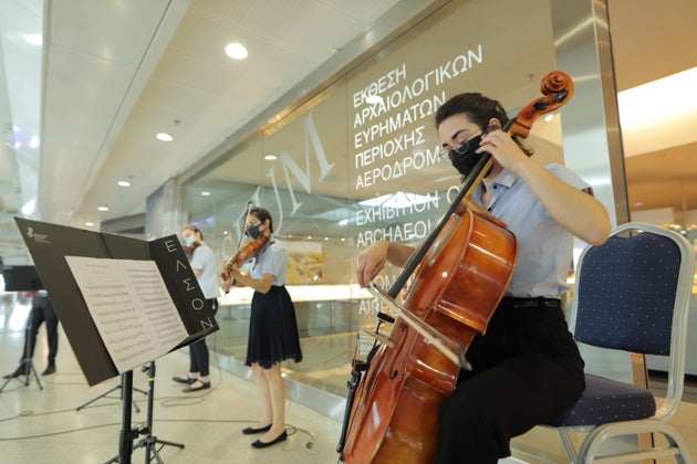 Χθες, στον Διεθνή Αερολιμένα Αθηνών, πρώτη μέρα απελευθέρωσης των πτήσεων προς όλους τους ελληνικούς προορισμούς, υποδέχθηκε τους ταξιδιώτες το κουαρτέτο εγχόρδων της Ελληνικής Συμφωνικής Ορχήστρα Νέων, παίζοντας κλασικά μουσικά έργα, τηρώντας όλους τους κανόνες ασφαλείας, ευρισκόμενοι σε ξεχωριστό χώρο και φορώντας μάσκες.