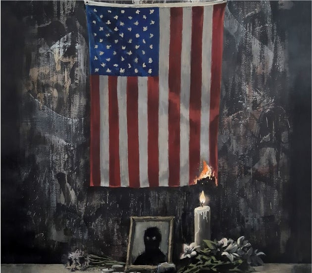 Κάτω από το έργο με ένα κερί που καίει την αμερικάνικη σημαία, ο Banksy γράφει: «Στην αρχή νόμιζα πως έπρεπε να το βουλώσω και να ακούσω τους μαύρους γι’ αυτό το ζήτημα. Αλλά γιατί να το κάνω; Δεν είναι δικό τους πρόβλημα, δικό μου είναι.