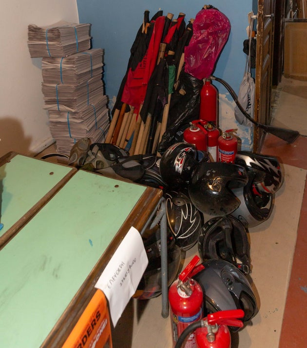 Σύμφωνα με την επίσημη ανακοίνωση της ΕΛ.ΑΣ., στο εσωτερικό των κτιρίων βρέθηκαν και κατασχέθηκαν κράνη, αντιασφυξιογόνες μάσκες, πυροσβεστήρες, στυλιάρια, ηλεκτρονικός υπολογιστής και έντυπο υλικό.