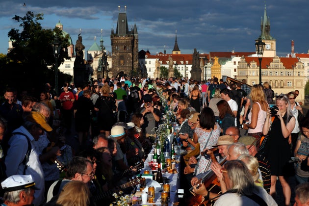 Συνεισφέροντας φαγητό ή ποτό οι συμμετέχοντες σε αυτό το δείπνο μοιράστηκαν το γεύμα τους πάνω στη γέφυρα αυτή του 14ου αιώνα, σύμβολο της πρωτεύουσας της Τσεχίας, την ώρα που μια αυτοσχέδια ορχήστρα έπαιζε μουσική και πολλοί τραγουδούσαν γύρω από ένα τραπέζι στολισμένο με μαργαρίτες.