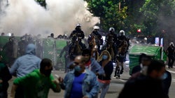 Η κατάσταση με το κορονοϊό ήταν πρόφαση για την συγκέντρωση που διοργανώθηκε - όπως είπε - «από ακροδεξιά στοιχεία και φασιστικές οργανώσεις». Ανέφερε ότι 43 αστυνομικοί τραυματιστήκαν και κάποιοι δέχθηκαν επίθεση με μαχαίρι, ενώ έδειξε και φωτογραφίες από τα τραύματα των αστυνομικών.