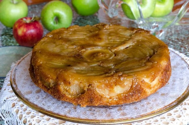 Είναι σημαντικό να αφήσουμε τη μηλόπιτα να κρυώσει για μερικά λεπτά. (Έτσι δεν θα λασπώσει το κέικ και επιπλέον θα μείνει όμορφα η καραμέλα πάνω στα μήλα.)