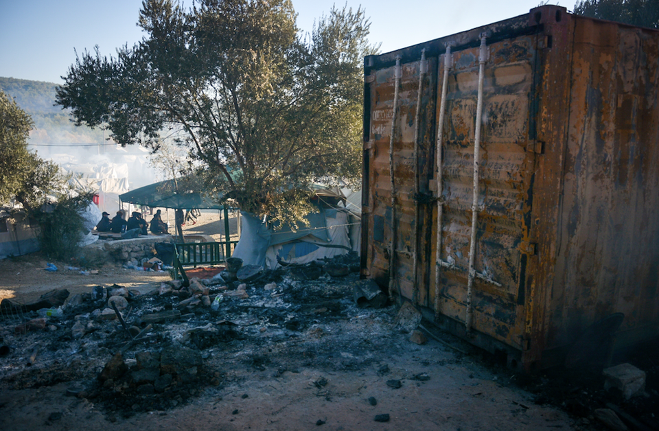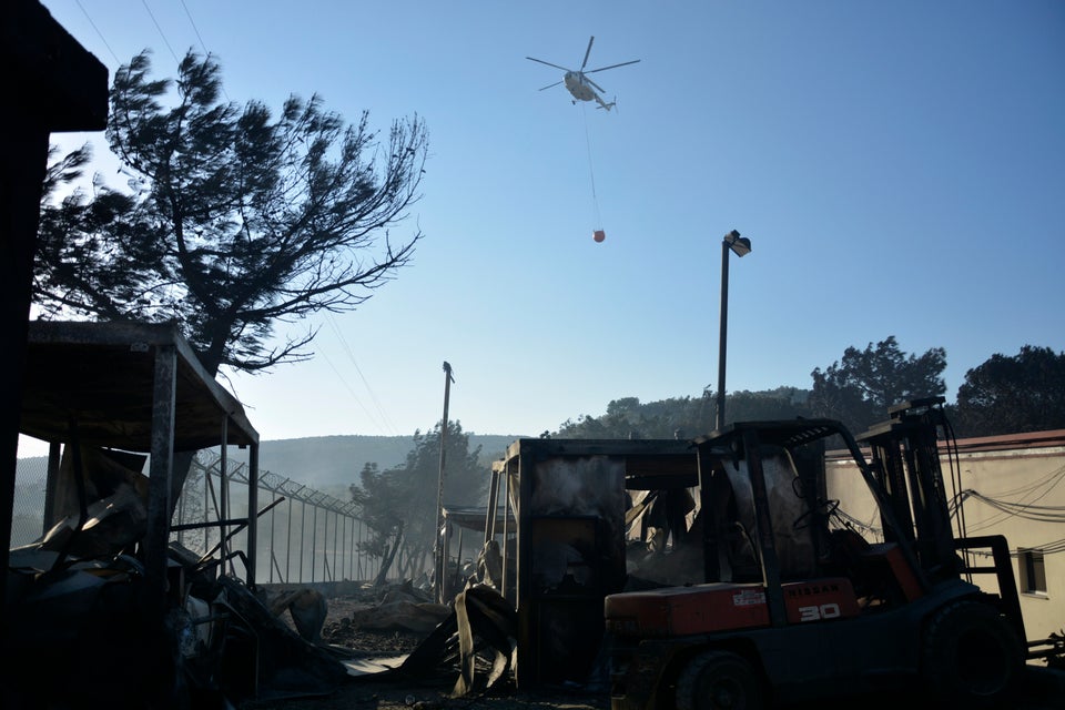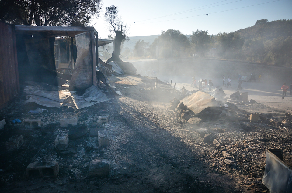 Η «ζούγκλα» της Μόριας και μεγάλο μέρος των κύριων εγκαταστάσεων του Κέντρου Υποδοχής και Ταυτοποίησης μετατράπηκε σε αποκαϊδια.