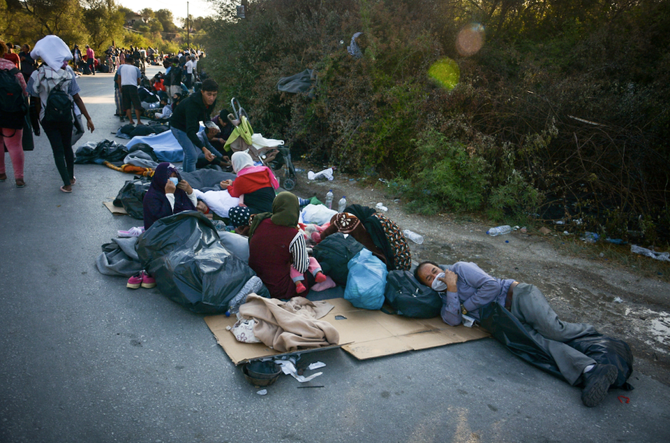 Τα αποκαϊδια της Μόριας και οι χιλιάδες άστεγοι πρόσφυγες στη μέση του δρόμου - Εικόνες από τη Λέσβο
