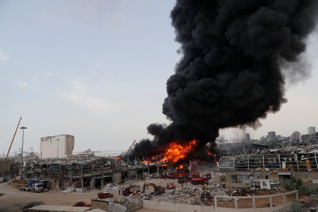 Εικόνες που μεταδόθηκαν από τηλεοπτικά δίκτυα δείχνουν πυροσβέστες να προσπαθούν να σβήσουν τη φωτιά στο λιμάνι, όπου βρίσκονται αποθήκες και σιλό σιτηρών που είχαν καταστραφεί από την έκρηξη της 4ης Αυγούστου, από την οποία περίπου 190 άνθρωποι είχαν χάσει τη ζωή τους.