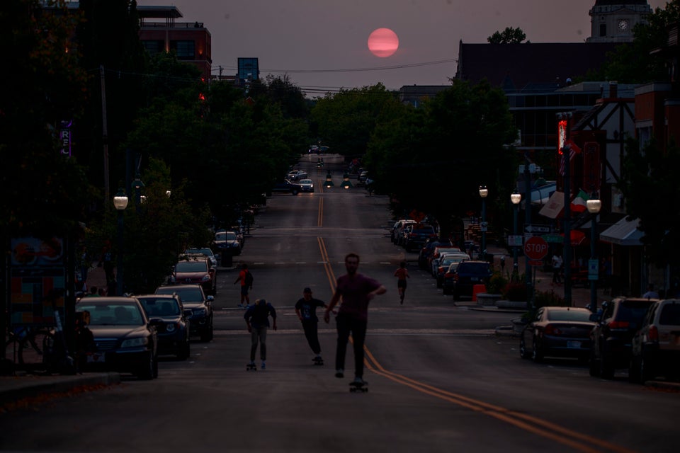 Στην απέναντι ακτή, οι συνθήκες ποιότητας του αέρα είναι οι χειρότερες που έχουν καταγραφεί. Ο καπνός έκλεισε την Γέφυρα της Χρυσής Πύλης και οδηγήθηκε από το Πόρτλαντ στο Σιάτλ δημιουργώντας πρωτοφανή ομίχλη, την ώρα που οι πυροσβέστες και οι εθελοντές δίνουν τη δική τους μάχη για να περιορίσουν τις φλόγες.