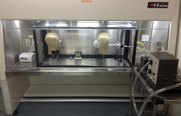 Από την άλλη, διαπιστώθηκε πως μια τελείως επαγγελματική μάσκα, μπορεί να εμποδίσει έως και το 90% του ιικού φορτίου. Να σημειωθεί ωστόσο πως ακόμα κι όταν αυτή είναι προσαρμοσμένη στο πρόσωπο με ταινία, ορισμένα σωματίδια του ιού εξακολουθούν να γλιστρούν.