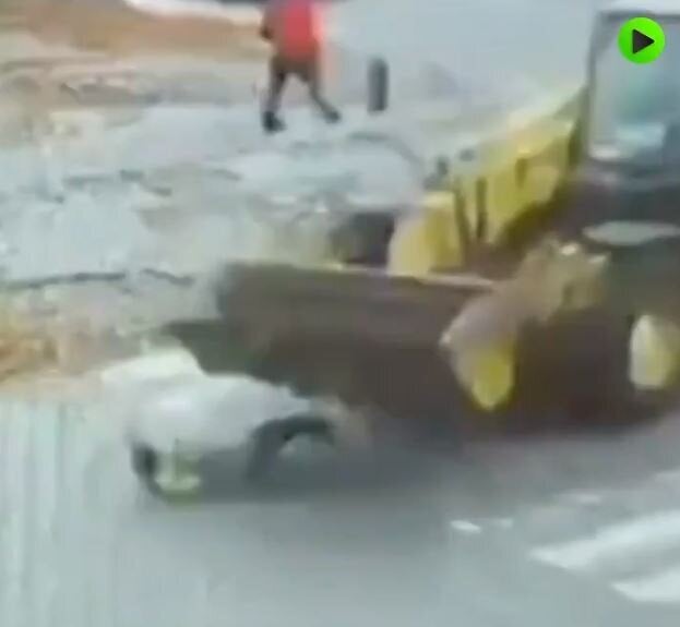 Από θαύμα σώθηκε μια γυναίκα στην επαρχία Κιροβογκάρντ της Ουκρανίας την ώρα που περνούσε αμέριμνη τη διάβαση πεζών, καθώς τα οχήματα είχαν σταματήσει στο κόκκινο φανάρι. Μια μπουλτόζα την χτύπησε το κεφάλι, την έριξε στο έδαφος και πέρασε από πάνω της. Εκείνη σηκώθηκε χωρίς να πάθει ούτε μια γραντζουνιά.