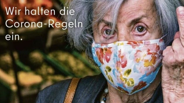 Έναν αν μη τι άλλο πρωτότυπο τρόπο επέλεξε η τουριστική Αρχή του Βερολίνου να προειδοποιήσει τους πολίτες να φορούν μάσκες ώστε να συμβάλλουν στην καταπολέμηση του κορονοϊού. Για την ακρίβεια, λάνσαρε μια διαφημιστική καμπάνια κατά την οποία μια ηλικιωμένη κυρία δείχνει το μεσαίο δάχτυλο σε όσους αρνούνται να χρησιμοποιήσουν τα προστατευτικά μέσα.