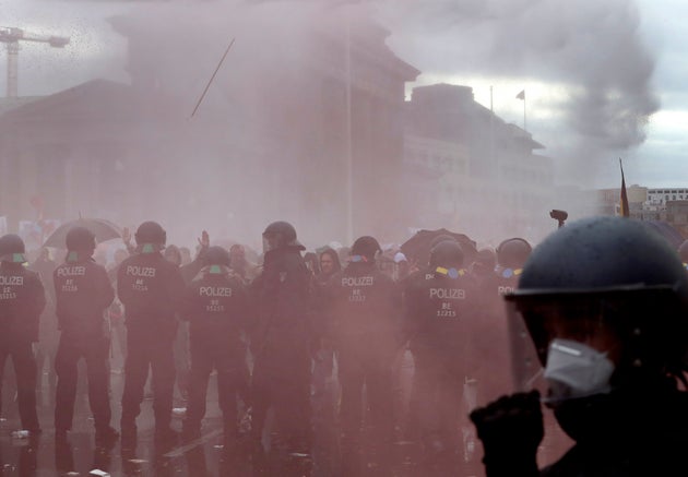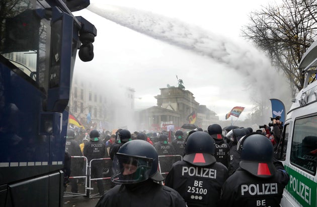 Η αστυνομία, η οποία προσπάθησε να διαλύσει την συγκέντρωση έξω από το Κοινοβούλιο, καθώς οι συμμετέχοντες δεν φορούσαν μάσκες και δεν τηρούσαν τους κανόνες της απόστασης, είχε ενισχυθεί με δυνάμεις από τη Βαυαρία και τη Σαξονία και χρησιμοποίησε ελικόπτερα, σκάφη και άλογα σε όλη την περιοχή γύρω από την Bundestag, ενώ τελικά χρησιμοποίησε και κανόνια νερού.