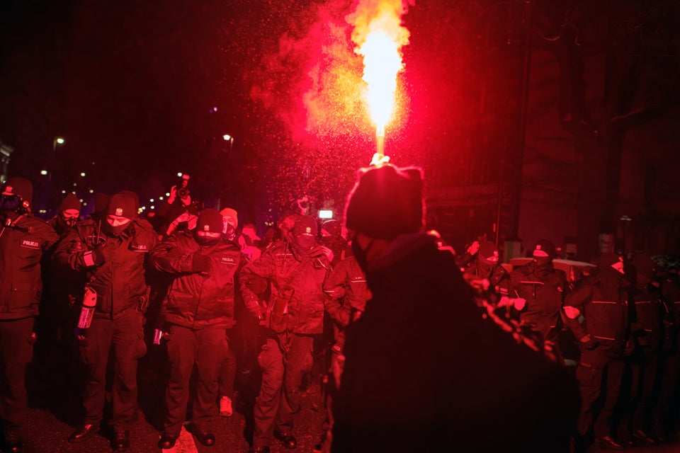 Κάποιοι έριξαν κόκκινη μπογιά μπροστά από την έδρα του Συνταγματικού Δικαστηρίου. Η αστυνομία συνέλαβε πολλούς διαδηλωτές που προσπάθησαν να εισβάλουν στο κτίριο. Το Συνταγματικό Δικαστήριο είχε αποφανθεί τον Οκτώβριο ότι η άμβλωση σε περίπτωση δυσμορφίας του εμβρύου “αντίκειται” στο Σύνταγμα της Πολωνίας.