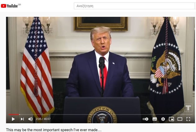 Το κανάλι του Αμερικανού προέδρου τελεί υπό αναστολή και «δεν επιτρέπεται» πλέον στον κάτοχό του ούτε «η μεταφόρτωση», ούτε «οι απευθείας μεταδόσεις βίντεο» (livestreams) «για τουλάχιστον επτά ημέρες», χρονικό διάστημα το οποίο «μπορεί να παραταθεί», προστίθεται στην ανακοίνωση της διεύθυνσης της δημοφιλέστερης πλατφόρμας βίντεο στο διαδίκτυο.