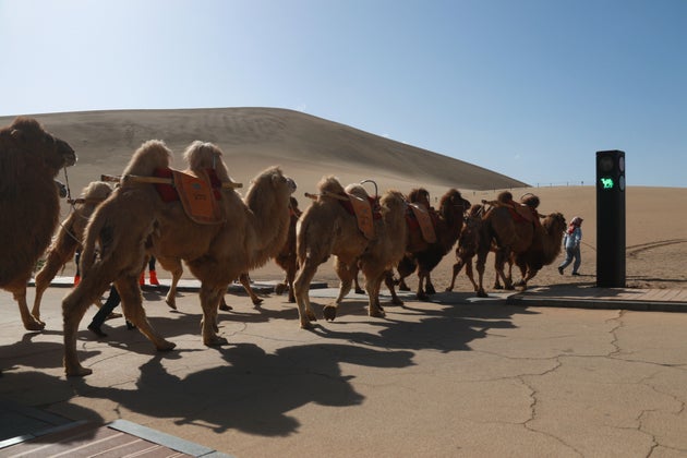 Αξιωματούχοι στη βόρεια Κίνα εγκαινίασαν με κάθε επισημότητα τα πρώτα φανάρια κυκλοφορίας στον κόσμο για καμήλες.