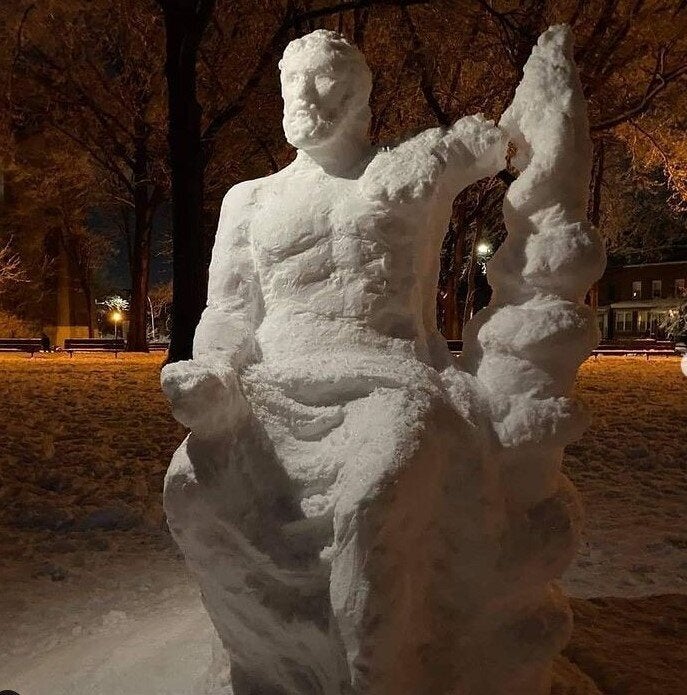 Την ιδέα για το επιβλητικό άγαλμα εμπνεύστηκε ο τοπικός πολιτικός Αντροάλντο Κονζάτι, ο οποίος πέθανε τον Μάρτιο από Covid-19.